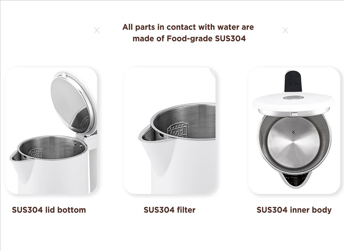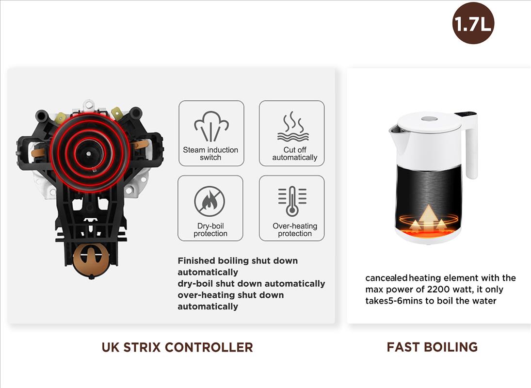 * It only takes around 5-8mins to boil the 1.7L water to 100℃ fastly