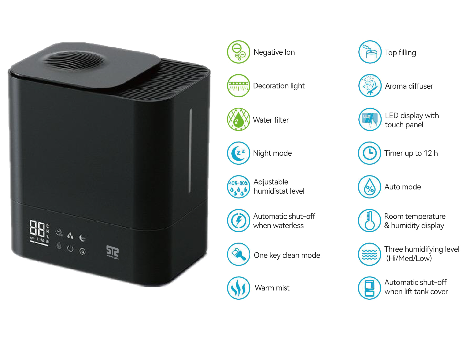 * Mist capacity >500mL/H .